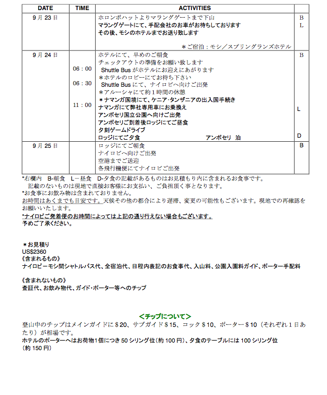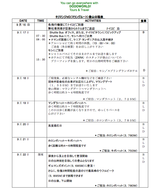 2011年7月15日に「キリマンジャロ行きたいなー」と何気に思ったのがスタート。この記事では出発前日までの軌跡を書くんで、これから行こうと思ってる人に少しでも役にたったらええかなと思う。